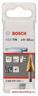 - Bosch Ступенчатое сверло HSS-TIN 4-20 мм (2608597526 , 2.608.597.526) по выгодной цене 4 196 р. руб.;