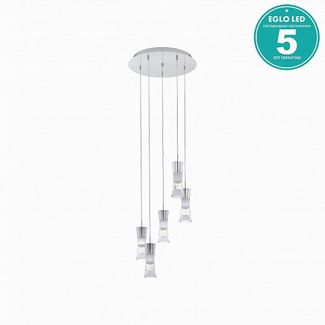 Бренд - Eglo (Австрия), Серия - Pancento, Высота, мм - 1100, Диаметр, мм - 350, Количество плафонов - 5, Масса нетто, кг - 3,797, Возможность подключения диммера - нельзя, Общее кол-во ламп - 5, Лампы в комплекте - светодиодные [LED], Лампы - светодиодная [LED], 5 Вт, цвет: белый теплый, 3000 K, Цвет плафонов и подвесок - белый, неокрашенный, Цвет арматуры - хром, Тип поверхности плафонов и подвесок - матовый, прозрачный, Тип поверхности арматуры - глянцевый, Материал плафонов и подвесок - полимер, Материал арматуры - металл, Класс электробезопасности - II, Напряжение питания, В - 220, Общая мощность, Вт - 25, Степень пылевлагозащиты, IP - 20, Стиль - модерн, Тип лампы - светодиодная [LED], Максимальная мощность лампы, Вт - 5, Цветовая температура, K - 3000 K, Форма плафонов - конусная, Направление плафонов - вниз, Диапазон рабочих температур - комнатная температура, Размеры, мм - 350x1100, Страна производителя - Австрия, Дополнительные параметры - способ крепления светильника к потолку - на монтажной пластине, Гарантия, месяцы - 60 Работаем круглосуточно!Возврат 21 день. Страна производства: Австрия Есть доставка.