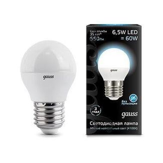 - Gauss Лампа светодиодная Gauss E27 6.5W 4100K матовая 105102207 ID - 234125 по выгодной цене 164 р. руб.;