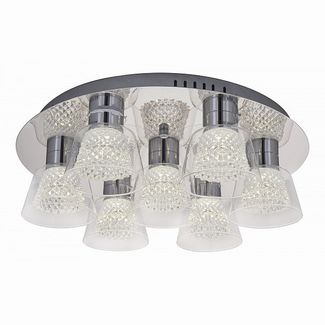 Бренд - Kink Light (Китай), Серия - Азан, Высота, мм - 140, Диаметр, мм - 450, Количество плафонов - 7, Возможность подключения диммера - нельзя, Общее кол-во ламп - 7, Лампы в комплекте - светодиодные [LED], Лампы - светодиодная [LED], 3 Вт, цвет: белый, 4000 K, Цвет плафонов и подвесок - неокрашенный, Цвет арматуры - хром, Тип поверхности плафонов и подвесок - прозрачный, рельефный, Тип поверхности арматуры - глянцевый, Материал плафонов и подвесок - стекло, Материал арматуры - металл, Класс электробезопасности - I, Напряжение питания, В - 220, Общая мощность, Вт - 21, Степень пылевлагозащиты, IP - 20, Стиль - модерн, Тип лампы - светодиодная [LED], Максимальная мощность лампы, Вт - 3, Цветовая температура, K - 4000 K, Форма плафонов - конусная, Направление плафонов - вниз, Диапазон рабочих температур - комнатная температура, Размеры, мм - 450x140, Страна производителя - Китай, Дополнительные параметры - способ крепления к потолку - на монтажной пластине, Гарантия, месяцы - 24 Работаем круглосуточно!Возврат 21 день. Страна производства: Китай Есть доставка.