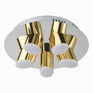 Бренд - RegenBogen LIFE (Германия), Серия - Фленсбург 10, Высота, мм - 110, Диаметр, мм - 300, Размер упаковки, мм - 370x370x160, Количество плафонов - 5, Масса нетто, кг - 1.66, Возможность подключения диммера - нельзя, Общее кол-во ламп - 5, Лампы в комплекте - светодиодные [LED], Лампы - светодиодная [LED], 220 В; 4 Вт, цвет: белый теплый, 3200 K, Цвет плафонов и подвесок - золото, Цвет арматуры - хром, Тип поверхности плафонов и подвесок - глянцевый, Тип поверхности арматуры - глянцевый, Материал плафонов и подвесок - металл, полимер, Материал арматуры - металл, Класс электробезопасности - I, Общая мощность, Вт - 20, Степень пылевлагозащиты, IP - 20, Стиль - техно, Тип лампы - светодиодная [LED], Напряжение питания лампы, В - 220, Максимальная мощность лампы, Вт - 4, Цветовая температура, K - 3200 K, Форма плафонов - цилиндрическая, Направление плафонов - вниз, Диапазон рабочих температур - комнатная температура, Размеры, мм - 300x110, Страна производителя - Германия, Дополнительные параметры - способ крепления светильника к потолку - на монтажной пластине, Гарантия, месяцы - 24 Работаем круглосуточно!Возврат 21 день. Страна производства: Германия Есть доставка.