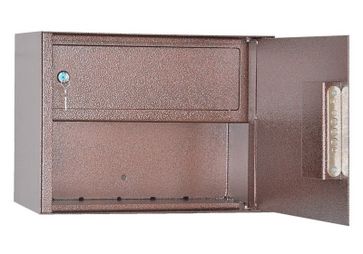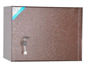 корпус шкафа толщиной 2 мм, дверь толщиной 2 мм.; на задней стенке корпуса расположены отверстия для крепления; сейф односекционный трейзером; в двери установлен ключевой 8-ми сувальдный замок ЗАО «Про-Сам» г. Рязань или аналогичный замок другого производителя; цвет: медь/бронза None