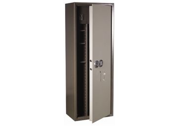 Внешние размеры, мм высота - 1500 ширина - 500 глубина - 370 Внутренние размеры, мм высота - 1494 ширина - 494 глубина - 305 Кодовый электронный замок Есть трейзер 1 класс взломостойкости Рассчитан на 5 стволов Вес: 120кг None