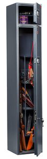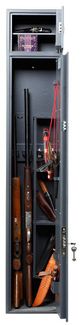 Внешние размеры (ВхШхГ) — 1630 x 300 x 300 мм Внутренние размеры (ВхШхГ) — 1382 x 296 x 259 мм Кодовый электронный + ключевой замок Количество полок — 5 Наличие трейзера — есть Кол-во стволов — 1 — 4 Вес — 46 кг None Возможен самовывоз. Есть доставка.