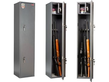 Сейф оружейный Чирок 1328 предназначен для хранения 3 ружей и имеет одно патронное отделение. Если вы хотите купить оружейный сейф недорого на 1 ствол, то лучший вариант Оружейный сейф Воробей. None