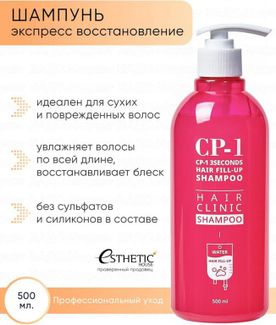 - ESTHETIC HOUSE Шампунь для волос ВОССТАНОВЛЕНИЕ CP-1 3Seconds Hair Fill-Up Shampoo, 500 мл по выгодной цене 1 053 р. руб.;
