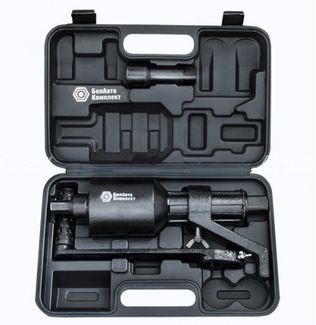 БАК.00118 Гайковерт с удлинителем двухскоростной производства включает в себя ластиковый кейс, гайковёрт с усилителем крутящего момента, две торцевые головки, ручку-вороток, удлинитель штока и инструкцию.. Гайковёрт ручной механический с удлинителем предназначен для облегчения процесса самостоятельного снятия и установки колес грузового автомобиля вне станций технического обслуживания. Гайковёрт грузовой, с 2-мя скоростными режимами, работает как с усилением вращения, так и без усиления. Для повышения удобства использования гайковёрт снабжен подвижной лапкой и удлинителем штока. Благодаря своей конструкции, ключ баллонный с усилителем крутящего момента значительно снижает прилагаемые усилия и экономит время при шиномонтажных работах. Преимущества гайковертов "БелАвтоКомплект": большая мощность, длительный срок службы, компактность и малый вес. Для удобства при транспортировке гайковёрт упаковывается в пластиковый кейс. Наличие удлинителя позволяет легко производить монтажные работы с внутренними колесами задней оси многоосных грузовиков.. Инструкция по применению:. Переключатель скорости вращения применяется для изменения значения передаточного числа усилителя крутящего момента. В положении "низкая скорость" значения передаточного числа 1:56 при нагрузке на вороток до 25 кг, развивается максимальное значение крутящего момента. Применяется для срыва и окончательной затяжки колесных гаек. В положении "максимальная скорость" значения передаточного числа 1:3,8. Применяется для предварительного закручивания гаек пред окончательной затяжкой или для быстрого откручивания. Переключение между режимами работы осуществляется по средствам вытягивания наружу или утапливания переключателя скоростей работы. При необходимости доступа к удаленным болтам и гайкам, установить удлинитель на торец штока после чего установить головку на удлинитель.. Снятие колеса:. Для отворачивания гайки крепления диска колеса установить усилитель крутящего момента с присоединённой головкой, либо, при н