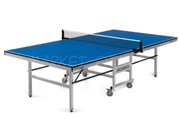 Стол для настольного тенниса с усиленной рамой, двойными раскосами, идеально фиксирующими стол во время игры и тренировок. Толщина столешницы обеспечивает отличный отскок мяча, что позволяет использовать стол для тренировочных занятий в спортивных клубах. Благодаря единой раме стол просто складывается и легко транспортируется. Цвет:комбинированный синий, серыйИгровое поле:специальное ЛДСП 22 мм с меламиновым покрытием (производство Россия-Германия)Сетка:в комплект не входитКант:металлический 40х25 мм по периметру игрового поляРама:из стального профиля 40х40 мм и 40х25 мм. Раскосы металические с фиксаторами надежно удерживают теннисный стол. Металлические детали имеют полимерное покрытие. Боковые опоры регулируются по высоте.Транспортировочная система:четыре обрезиненных ролика диаметром 100 мм, одна пара со стопором.Размер (международный стандарт):длина 274 см, ширина 152,5 см, высота 76 см.Размер в сложенном виде:длина 152,5 см, ширина 60 см, высота 187 см.Размер упаковки:2 шт. по длине 157 см, ширине 10 см, высоте 141 см. Стол поставляется частично в собранном виде.Вес стола:86 кгВес в упаковке:55 (1/2 стола) кгАртикул:60-720 None Есть доставка.