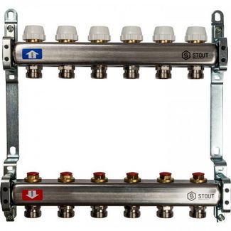 - Коллектор из нержавеющей стали 6 выхода Stout, SMS 0922 000006 в каталоге Теплые полы в России;