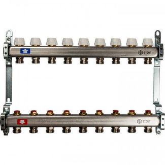 - Коллектор из нержавеющей стали 9 выхода Stout, SMS 0922 000009 в каталоге Теплые полы в России;