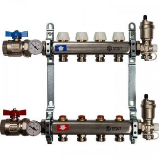 - Коллектор из нержавеющей стали в сборе 4 выхода Stout, SMS 0912 000004 в каталоге Теплые полы в России;