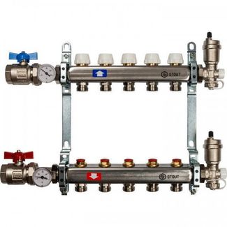 - Коллектор из нержавеющей стали в сборе 5 выхода Stout, SMS 0912 000005 в каталоге Теплые полы в России;