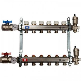 - Коллектор из нержавеющей стали в сборе 6 выхода Stout, SMS 0912 000006 в каталоге Теплые полы в России;