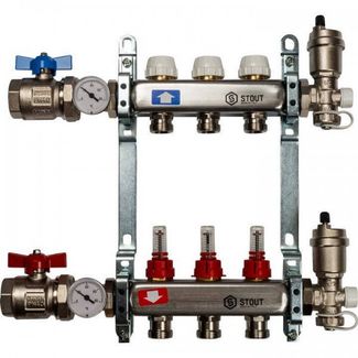 - Коллектор из нержавеющей стали в сборе с расходомерами 3 выхода Stout, SMS 0907 000003 по выгодной цене 16 875 р. руб.;