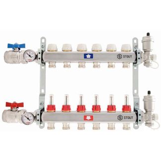 - Коллекторный блок из нержавеющей стали с расходомерами Stout 1" 3 4"x8 в каталоге Теплые полы в России;