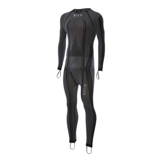 Моносьют SIXS из ткани Carbon является непременным атрибутом для каждого мотоциклиста носящего кожаную одежду на треке.«Гоночная» версия моносьюта оснащена эластичными петлями для рук и ног благодаря чему одежда не меняет своего положения при активных движениях. С ним гораздо легче надевать верхнюю экипировку – например кожаный комбинезон. Кроме того ткань Carbon обеспечивает естественную терморегуляцию и эффективно отводит пот от кожи даже в самую жаркую погоду. С моносьютом SIXS вам больше не страшны сквозняки и простуды поскольку влага не остается на теле. Также можно использовать при занятиях спортом где используются комбинезоны включая фридайвинг или лыжи. Антистатическая ткань Бесшовная технология None