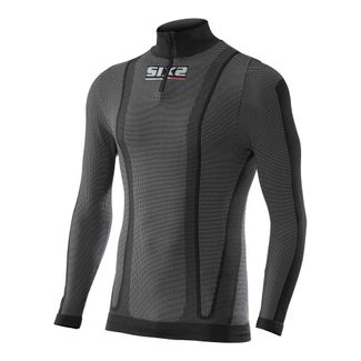 Термокофта c молнией на воротнике SIXS из ткани Carbon Thermo предназначена для холодной погоды (ниже 5°C). С ней спортсмены не тратят драгоценную энергию на обогрев тела. В таких условиях необходима одежда способная поддерживать естественную температуру тела – одежда которая не впитывает пот а отводит его наружу. Она обеспечивает непревзойденную защиту благодаря высокому вороту (который легко расстегнуть с помощью удобной молнии) и утепленной ткани Carbon Thermo которая на 45% плотнее оригинальной ткани Carbon. Бесшовная технология Антистатическая ткань None