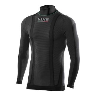 Термокофта SIXS из ткани Carbon SuperLight идеально подходит для ситуаций когда спортсмену необходимо защитить шею от сквозняков в жаркую погоду. Облегченная ткань Carbon SuperLight (на 36% легче оригинальной ткани Carbon) отводит пот (а с ним и жар) наружу вместо того чтобы впитывать его поддерживая естественную температуру тела а высокий ворот защищает шею от внезапных перепадов температур и холодного ветра. Бесшовная технология Антистатическая ткань None