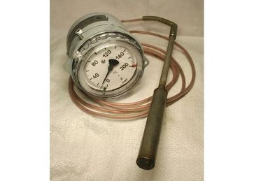 Термометры манометрические показывающие электроконтактные ТКП-100эк предназначены для измерения температуры воды, масла и других неагрессивных жидкостей и управления внешними электрическими цепями от сигнализирующего устройства. Диаметр прибора - 100мм. Длина капилляра - от1,6м до 10м.