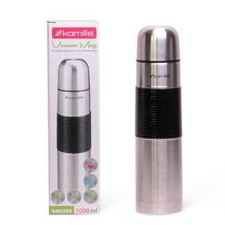 Термос Kamille обладает высоким качеством, надежностью, компактными размерами и эстетичным дизайном. Такой термос станет незаменимым в машине, на отдыхе или в путешествии. Материал корпуса: нержавеющая сталь. Резиновая вставка: есть. Материал колбы: нержавеющая сталь. Материал крышки: нержавеющая сталь. Объем: 1000мл. Ручка: нет. Время сохранения температуры: 6-8 часов. .Особенности: