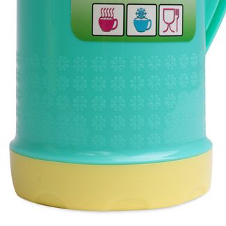Тип термоса: питьевой. Материал корпуса: пластик. Материал колбы: стекло. Материал крышки: пластик. Объем: 450мл. Высота: 25.5 см. Съемный клапан: нет. Количество чашек: 2. Ручка: есть. Материал чашек и ручки: пластик. Поверхность: глянцевая. Время сохранения температуры: 8-10 часов. Варианты цветов: оранжевый, желтый, голубой. Особенности: