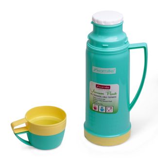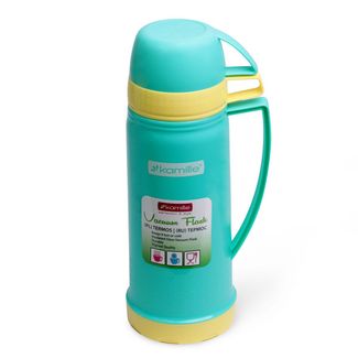 - Термос 450мл пластиковый со стеклянной колбой (2 чашки; голубой, оранжевый, желтый) по выгодной цене 420 р. руб.;