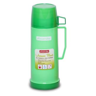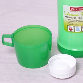 Тип термоса: питьевой Материал корпуса: пластик Материал колбы: стекло Материал крышки: пластик Объем: 450мл Высота: см Диаметр по дну: см Съемный клапан: нет Количество чашек: 1 Ручка: есть Материал чашки и ручки: пластик Поверхность: глянцевая Время сохранения температуры: 8-10 часов Варианты цветов: синий, зеленый, красный Особенности: