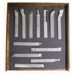 Набор токарных резцов из 12-ти штук с напайными пластинами из твердого сплава ВК8, Т5К10, Т15К6 для малогабаритных (бытовых) станков, таких как:JET, METALMASTER, OPTIMUM, PROMA, STALEX, VISPROM, UNIVERSAL, КОРВЕТ, ЭНКОР и др.Выпускается в трех исполнениях 8х8, 10х10 и 12х12.Количество и типоразмеры резцов в наборе могут быть изменены под заказ.Все резцы изготавливаются строго по ГОСТу и имеют современные сертификаты соответствия.Список резцов в наборе: Проходной отогнутый Подрезной Проходной прямой Расточной для сквозных отверстий Канавочный внутренний Проходной отогнутый левый Подрезной левый Резьбовой для наружной резьбы Проходной упорный прямой 2-х сторонний правый Проходной упорный прямой 2-х сторонний левый Расточной для глухих отверстий Отрезной Необходима предоплата, мин. сумма заказа 500руб. Есть доставка.