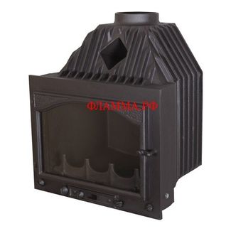 РЕТРО это монолитная отопительная топка. Само название серии определяет стиль. Эта топка для ценителей традиции и тёплого интерьера. Монолитная каминная топка изготовлена из серого чугуна высшего качества, способом литья в песочные формы. Толщина стенок корпуса от 8 mm до 22 mm. Корпус (камера сгорания) представляет собой цельную форму - монолит, дверка топки и витрина зольника подогнаны к корпусу способом шлифовки, что позволяет добиться абсолютной плотности без использования уплотнительного шнура. Вертикальные боковые каналы, по которым воздух проходит в камеру сгорания, в корпусе закрыты со стороны стекла дверки, благодаря чему воздух поступает сверху создавая вихревой поток и, обходя стекло, оставляет его чистым. Это позволяет получать эффективную теплоотдачу в помещении, в котором смонтирована каминная топка, а так же позволяет восхищаться красотой горения дров. Стекло вмонтированное в дверки является жаростойким и выдерживает температуру 800 градусов С. Плотное и сильное закрытие дверки при помощи ригеля или пружинного самозатягивающегося ригельного замка, гарантирует стабильное и безопасное закрытие камеры сгорания. Мощная конструкция и большое количество вертикальных рёбер, придаёт каминной топке стабильность. Наружные и внутренние вертикальные рёбра создают большую поверхность теплообмена. Два регулятора, находящихся с правой и левой сторон, внизу фронтальной стороны топки, предназначены для регулирования подачи воздуха в камеру сгорания (полное вторичное сгорание. Внутри корпуса, в нижней части топки, расположены колосники с отверстиями, под которыми находится зольный ящик. В верхней части камеры сгорания находится профилированный дефлектор (заслонка), который выполняет функцию перегородки, меж