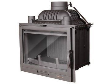 Система централизованной подачи воздуха в топку через два канала диаметром 80 мм. Полностью чугунная топка с функцией непрерывного горения. Камин имеет защитный гребень.