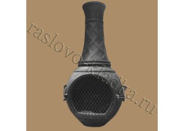 Чугунная садовая печь выполненная в виде вазы. Топка оснащена решетчатой дверцей позволяющей любоваться открытым пламенем. None