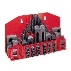 Комплект приспособлений для крепления заготовок на рабочих столах фрезерных или сверлильных станках. Шпилька резьбовая – 6 комплектов по 4 шт. Опора – 3 комплекта по 4 шт. Прижим – 3 комплекта по 2 шт. Гайка короткая – 6 шт. Гайка длинная – 4 шт. Сухарь – 6 шт. Специальный ящик для комплекта прихватов. Материал – сталь.