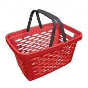 Пластиковая покупательская корзинка с двумя складывающимися ручками, предназначена для супермаркетов.