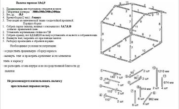 Вес: 18.5 кг. Размеры: 3.0 х 1.9 м, длина козырька 30 см. Особенности: в задней стенке имеется дверь на молнии.Инструкция к торговой палатке 3х1,9 м None