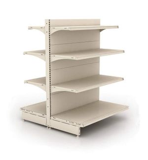 Островной стеллаж с полками используется для обеспечения доступа к товару с обеих сторон стеллажа.