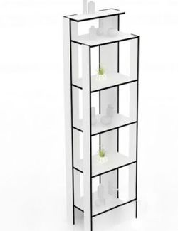Расстояние между полками 400мм, между двумя верхними 200мм. Высота подиума 200мм.