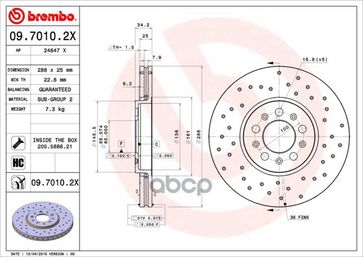 Диск Тормозной Xtra | Перед | Vw Polo Saloon (602, 604, 612, 614) 1.6 05.2010 - <=> Skoda Rapid (Nh3) 1.6 05.2015 - Brembo арт. 0970102X