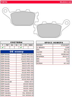 - FERODO (Италия) Kолодки тормозные задние для Kawasaki Z750 '07-12 Z1000 '07-09 Versys1000 (синтетика) FERODO FDB754ST в каталоге Тормозная система в России;