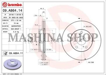 - Тормозной диск передний вентилируемый [275x22] 5 отв.TOYOTA Auris 1,4-2,2L (07->) Corolla 1,4-1,8L по выгодной цене 2 120 р. руб.;