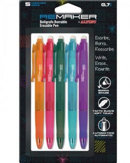 Набор стираемых ручек Alpino Remaker 5 шт подойдет для использования как первоклассниками, так и подростками. Благодаря особым чернилам на водной основе написанное можно легко удалить специальным ластиком, который находится на кончике изделия. Ручка-автомат долго будет радовать вашего ребенка, потому что обладает повышенным сроком эксплуатации. Минимальная сумма заказа 1500 руб. Возможен самовывоз. Есть доставка.