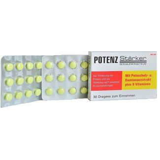 Биологически активная добавка к пище "Потенцштеркер" (" Potenzstarker ") Потенцштеркер – самый популярный БАД, выпускаемый Milan Arzneimittel GmbH. Благодаря специально подобранным компонентам, уже через несколько дней после начала приема, Вы почувствуете прилив сил, бодрость, повышение сексуального влечения, улучшение потенции. Для чего: для улучшения потенции в любом возрасте, повышения либидо и усиления яркости оргазма. Для кого: для мужчин, которые вследствие стресса, усталости, авитаминоза, интенсивных умственных или физических нагрузок испытывают периодические трудности с возбуждением и эрекцией. Также рекомендуется для мужчин, которые хотят восстановить былую яркость ощущений. Состав: глутаминовая кислота, аскорбиновая кислота, экстракт семян колы, лицитин, экстракт листьев дамианы, сахароза, экстракт коры дерева муира-пуама, карбонат кальция (антислеживающий агент), никотинамид, тальк (антислеживающий агент), поливинилпирролидон (стабилизатор), диоксид титана (краситель), стеарат магния (антислеживающий агент), декспантенол, полиэтиленгликоль (стабилизатор), сироп глюкозы, глицерол (носитель), d-альфа-токоферола ацетат, пиридоксина гидрохлорид, шеллак (глазирователь), рибофлавин, тиамина гидрохлорид, лактоза, гуммиарабик (стабилизатор), ретинола ацетат, краситель желтый хинолиновый, цианокобаламин. Способ применения: взрослым принимать по 1 драже 2 раза в день во время еды в первой половине дня, запивая достаточным количеством воды (150-200 мл). Продолжительность приема - 2 недели. При необходимости прием БАД можно повторить через месяц.Перед применением рекомендуется проконсультироваться с врачом. Противопоказания: индивидуальная непереносимость компонентов, беременность, кормление грудью, повышенная нервная возбудимость, бессонница, повышенное артериальное давление, нарушения сердечной деятельности, выраженный атеросклероз. Форма выпуска: драже массой 437 мг. Количество: 30 драже. Доставка по всей России, в Беларусь и Казахстан Возможен самовывоз. Есть дос
