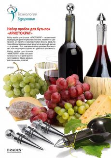 Набор пробок для бутылок Bradex Аристократ позаботится о хранении уже открытых напитков: вино, шампанское, коньяк. Пробки из набора будут герметично закупоривать открытые бутылки с благородными напитками и продлевать срок хранения их содержимого. Прослужат пробки много лет. Минимальная сумма заказа 1500 руб. Возможен самовывоз. Есть доставка.