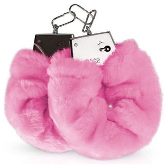 металлические наручники с ключами, вагинальные шарики со смещенным центром тяжести, вибратор на палец, вибратор-кролик, маска для глаз пуховка.