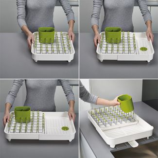 Все кухни в домах разные, но проблема одна: не хватает места для самого необходимого. С умными решениями от Joseph Joseph можно запросто экономить пространство. Раздвижная сушилка для посуды разбирается ровно в два раза, в зависимости от количества тарелок и чашек, которые вам необходимо просушить прямо сейчас. С помощью специального поворотного "носика" вы можете регулировать слив лишней воды прямо в раковину. Этому так же способствуют "ребра" на дне сушилки и уклон поверхности. Металлические стойки с мягкими наконечниками бережно удерживают тарелки, защищая их от царапин, а столовые приборы ловко помещаются в специальный стакан. Наличные, Visa/MasterCard, Яндекс.Деньги, WebMoney Возможен самовывоз. Есть доставка.