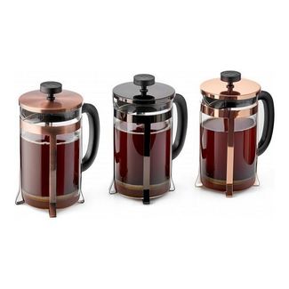 Модный френч-пресс George с оправой в ретро-цвете прекрасно подходит для заваривания кофе или чая. Классическая форма корпуса дополнена красивой оправой, защищающей колбу от случайных ударов. Оправа имеет металлическое напыление, нанесенное гальваническим методом, благодаря чему вы можете быть уверены в стойкости и прочности внешнего слоя. Стильные и необычные цвета оправы френч-пресса дают возможность прекрасно интегрироваться в современные интерьеры. «Черный антрацит» - идеальный выбор для обладателей кухонь в стиле хай-тек и минимализм Характеристики: