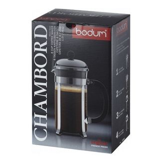 Кофейник френч-пресс Bodum Chambord является самым известным френч-прессом и входит в число выдающихся произведений мирового дизайна. Chambord дважды был удостоен золотой медали как лучший французский пресс у American Culinary Institute, одного из самых уважаемых в мире кулинарного института. Корпус кофейника изготовлен из боросиликатного стекла. Прочное и термостойкое, оно сохраняет прозрачность и после многих лет использования. Теплоустойчивость позволяет неспеша наслаждаться приготовленным напитком. Плотно прилегающий, качественный фильтр исключает попадание в напиток мелких кофейных частиц, послуживших основой для настаивания, и вы получаете прекрасный однородный кофе. Материалы, из которых изготовлен кофейник, имеют высокое качество, а потому он долговечен в использовании. Характеристики: