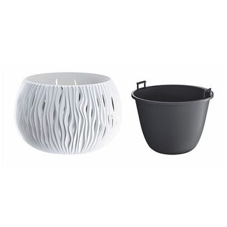 Кашпо для цветов Sandy Bowl является замечательным украшением садового интерьера, дома, зоны отдыха. Оно обладает повышенной стойкостью к высоким и низким температурам, а также к различным механическим повреждениям. Кашпо для цветов Sandy Bowl состоит из двух предметов: внутренней емкости, куда сажают растение, и декоративной емкости. • Комплектация: 2 предмета (внутренняя емкость + декоративная емкость) • Размер (ДМхВ): 478х300 мм • Объемы: 20,75 л • Цвет: белый • Материал: пластик • Вес брутто: 2,097 кг • Производитель: Prosperplast • Страна: Польша None