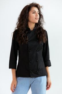 Описание модели · Китель поварской TOMMELISE (куртка поварская женская) имеет стильный приталенный силуэт, который идеально сидит по фигуре · Воротник-стойка · Застежка двубортная наклонная · Рукава длиной 3/4 с отворачивающимися манжетами закругленной формы · Полочки и спинка с рельефными швами, подчеркивающими силуэт