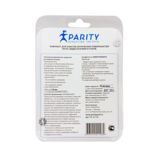 - Комплект средств Parity для очистки оптических поверхностей фото- видеотехники и очков, спрей 70 мл, салфетки 15х15 мм 2 шт по выгодной цене 678 р. руб.;