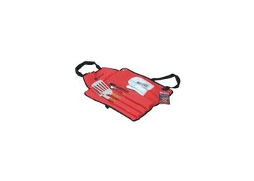 Набор для барбекю состоит из пяти предметов: лопатка, вилка и щипцы, варежка-прихватка и сумка-чехол. Такой набор будет очень кстати для любителей пикников на природе. None
